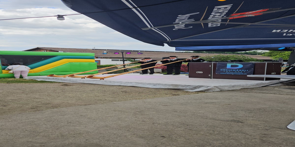 Die musikalische Unterhaltung sorgte den ganzen Nachmittag und Abend über für eine beschwingte Stimmung – von Alphornklängen über tropische Rhythmen bis zur Live-Sängerin und DJ-Party war für jeden etwas dabei 🎶💃.